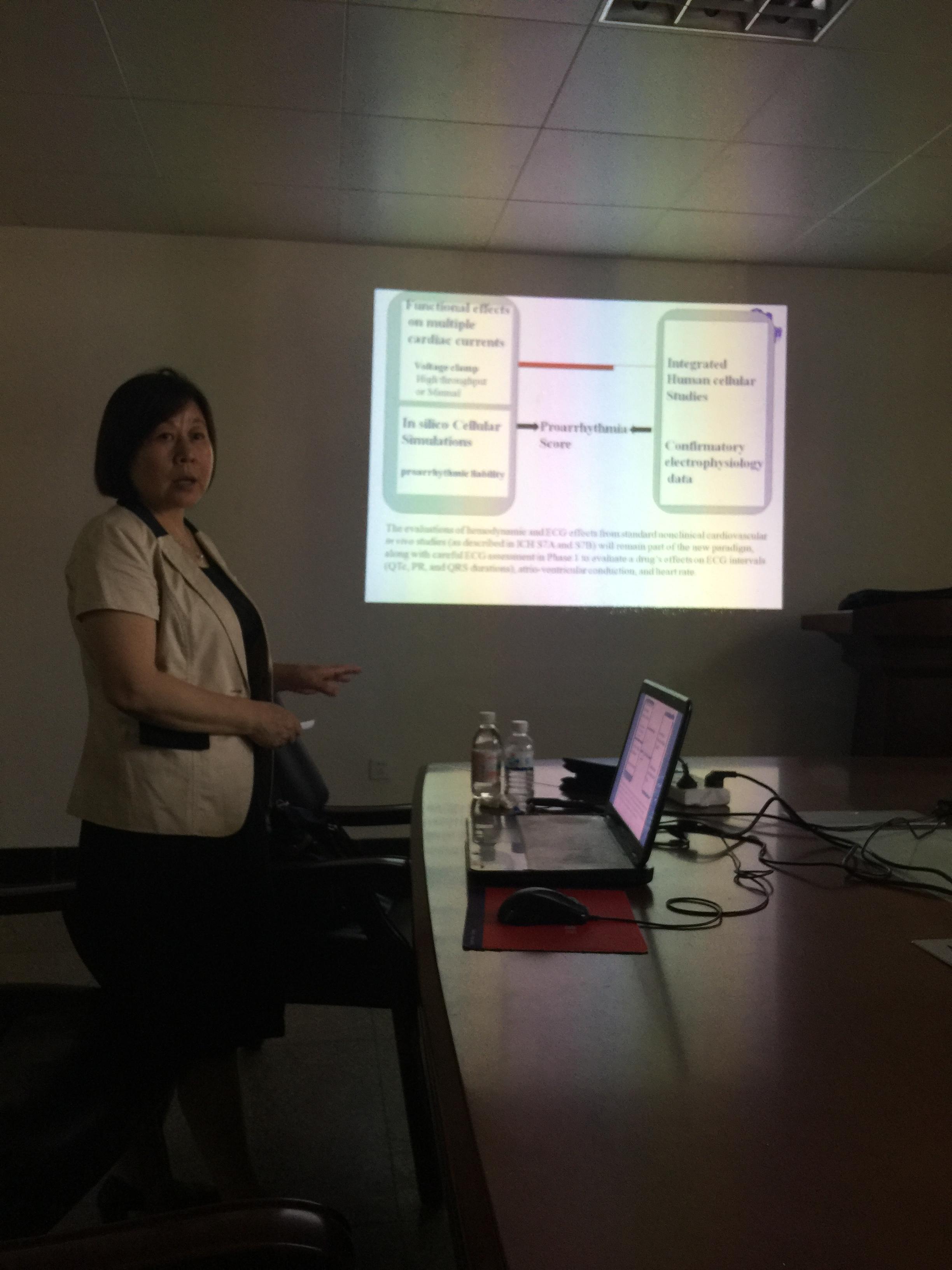 6月14日河北医科大学“新药安全评价研究中心”主任许彦芳教授来公司进行学术交流,并于当日下午给公司广大师生做了激情洋溢的学术报告,报告由太阳集团tyc151cc王克威经理主持。报告中详细讲述了“药物潜在致心律失常风险评估策略、安全评价在新药研发中的重要意义、及评价实验中应注意的事项”。公司师生根据个人研究领域及兴趣爱好,向许教授进行现场请教与咨询。报告会后,在王经理的带领下参观了太阳集团tyc151cc实验室,并与朱玮等老师进行了座谈,商谈学术研究合作交流事宜。