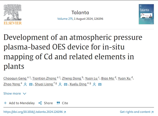 镉作为一种广泛应用的工业重金属,通过工业废物排放进入生态系统后,会在植物和人体内积聚,引发显著的生理毒性。鉴于普通人日常摄入的镉超过80%来自食用植物,因此,监测生态系统中镉的含量,特别是植物中的含量及其分布情况,始终是公众持续关注的重要议题。近日,公司药物分析学系丁薛璐团队于《Talanta》(中科院期刊分区1区top期刊,IF=6.1)在线发表论题为Development of an atmospheric pressure plasma-based OES device for in-situ mapping of Cd and related elements in plants的研究成果。该研究得到了山东省自然科学基金委、青岛市博士后应用研究项目等项目的资助。公司药物分析学研究生耿超群、张甜甜为第一作者;青岛市食品药品检验研究院杨钊、公司梁帅和丁薛璐为该论文的共同通讯作者。