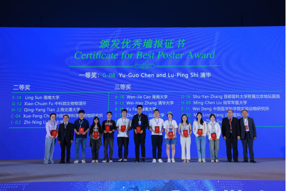 公司张汉霆团队的硕士研究生孙荣臻的墙报《PDE4B inhibitor A33 ameliorates cognitive defects of alcoholic dementia (AlD) in APP/PS1/Tau triple transgenic mice via PDE4B/cAMP/PKA signaling》在此次大会上荣获三等奖。此次壁报比赛竞争异常激烈,共有超过160份壁报参与角逐,最终仅选出16份,淘汰率高达90%。在张汉霆等众多老师的精心指导和全力支持下,孙荣臻同学凭借卓越的创新能力和扎实的科研功底,在众多参赛队伍中脱颖而出,摘得奖项。