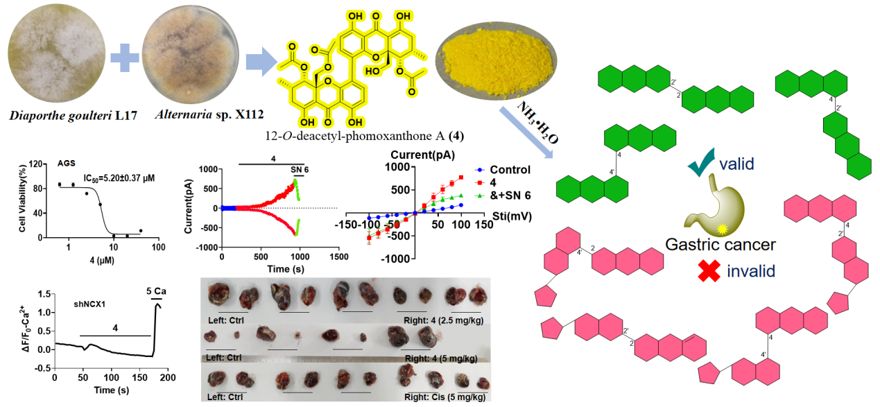 近日,太阳集团tyc151cc董辉教授与彭晓娉副教授联合团队在微生物源天然产物抗胃癌机制研究领域取得重要突破。其研究成果“Fungal dimeric xanthones as anticancer agents by novelly stimulating sodium-calcium exchanger 1”(DOI:10.1016/j.ejmech.2025.117543)发表于药物化学领域的经典顶级期刊《European Journal of Medicinal Chemistry》(中科院医学2区,药物化学1区,IF = 6.0)。该研究由硕士研究生周国龙、董克敏共同完成,董辉教授和彭晓娉副教授为共同通讯作者。