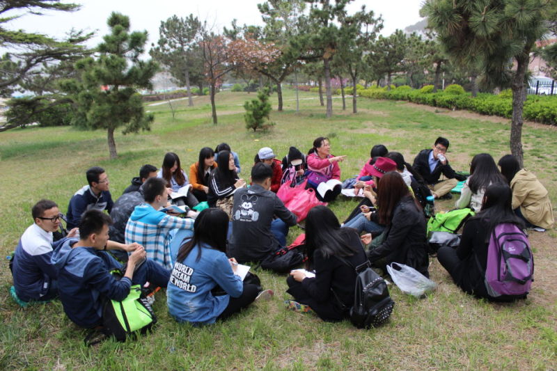 下午在流清河附近草坪上,面相大海背靠崂山,伴随着阵阵海风,同学们围老师团座而下,置身于自然界之间,听老师讲授药用植物知识。李英霞教授创新实践教学,身体力行,注重于实践,亦着眼于氛围,为同学们提供一个难得的理论与实践相结合的学习机会。