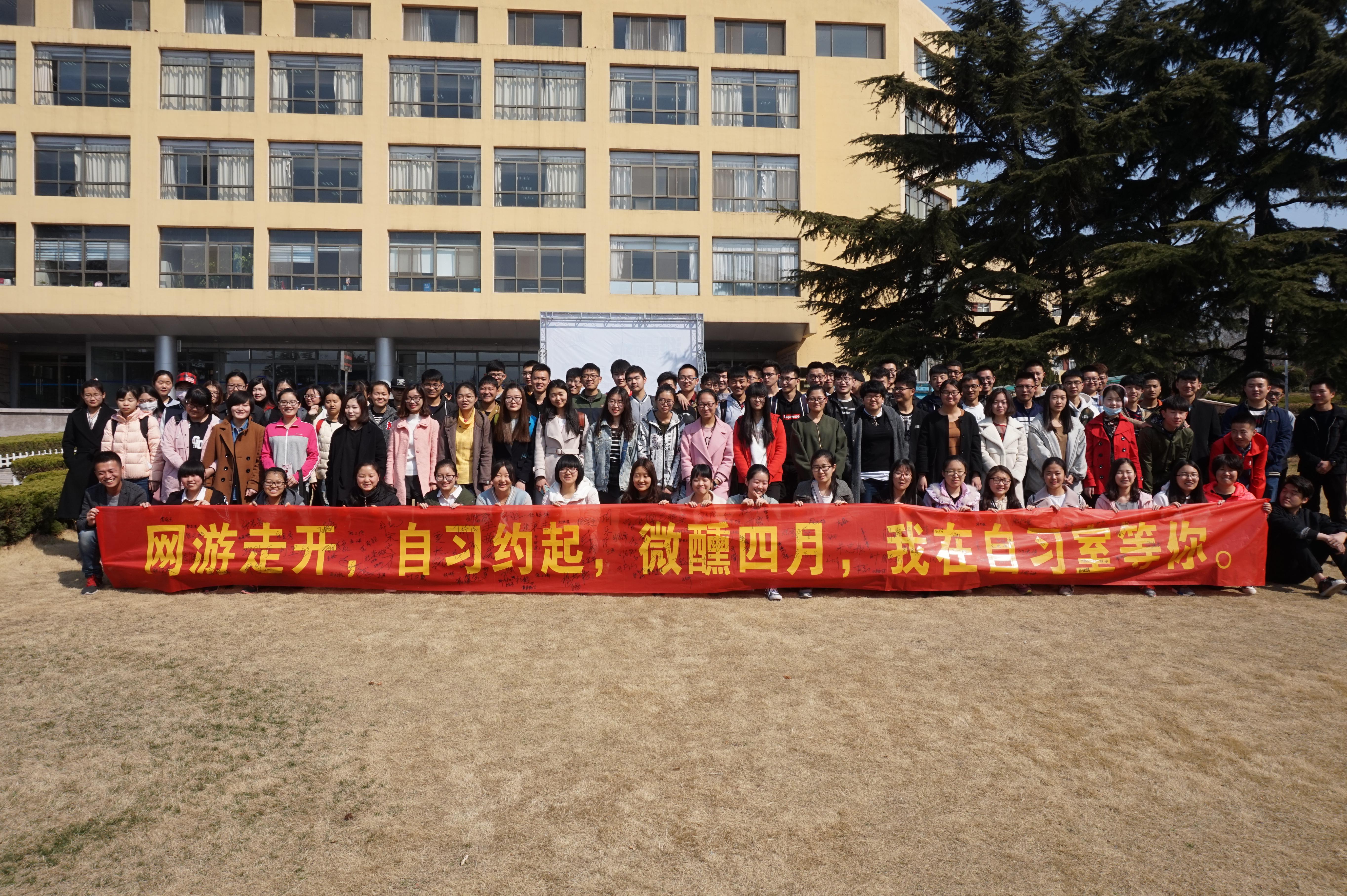 3月19日上午,太阳集团tyc151cc在博文楼前举办了“微醺四月,我在自习室等你”的集体签名活动。同学们对此次活动参与性很高,纷纷许下承诺,远离游戏,合理规划学习时间,争做全面发展的优秀老员工。