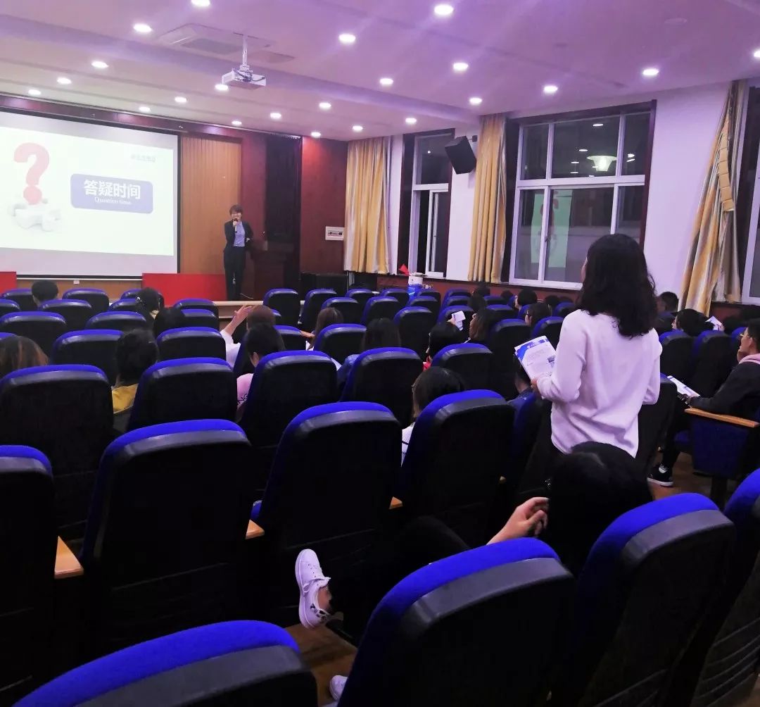 第三部分齐鲁制药人力资源部工作人员向各位同学介绍了应聘的流程,然后进行答疑环节,现场参加的同学们针对宣讲过程中自己的疑问,踊跃地进行提问。公司工作人员也细心地为各位同学提出的问题进行了详细的解答。