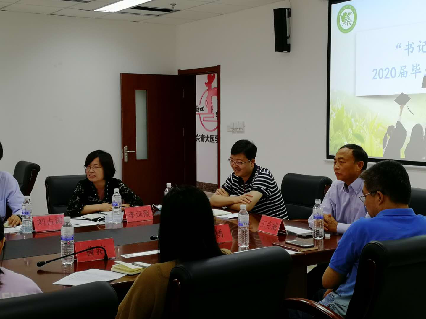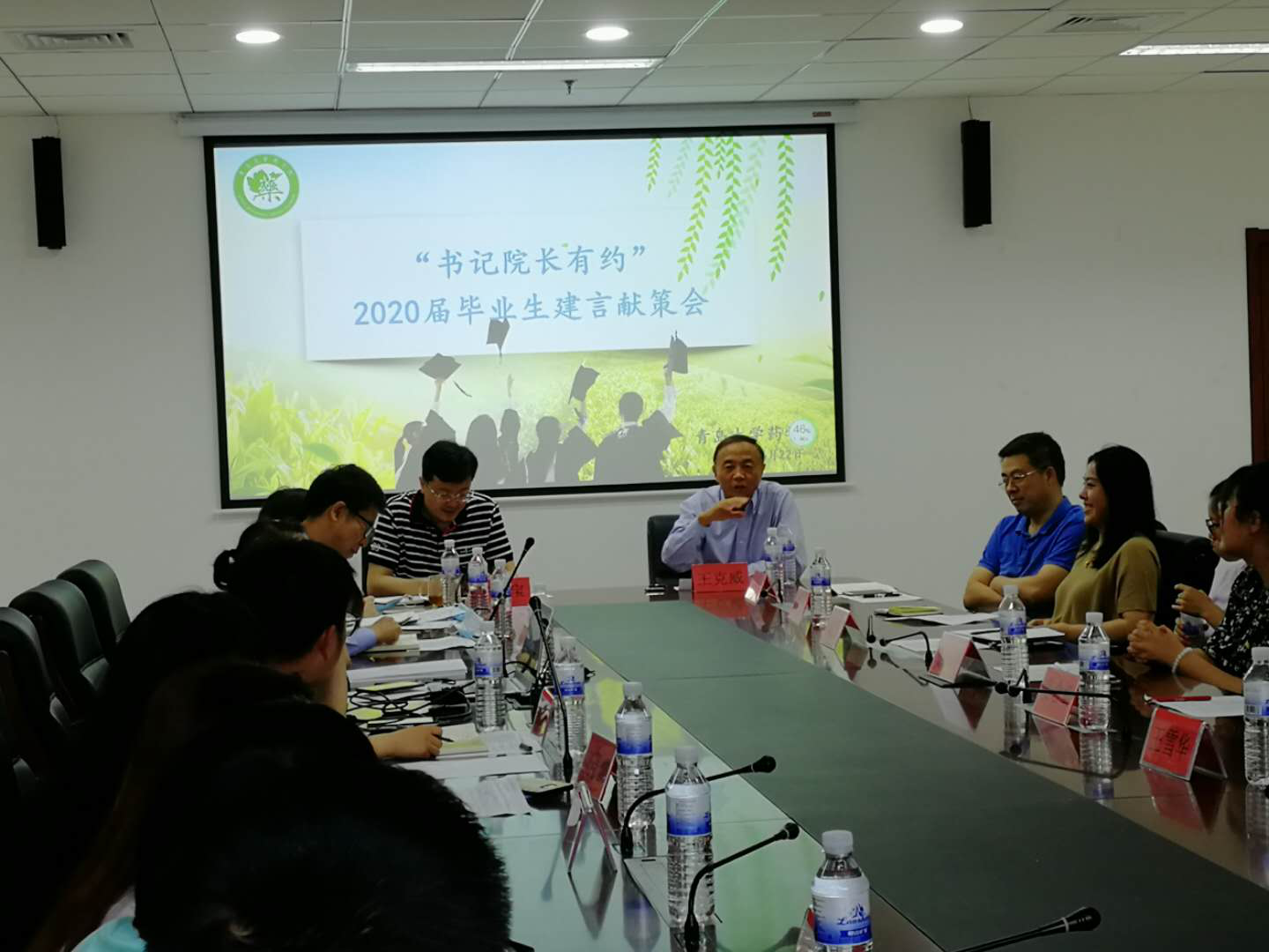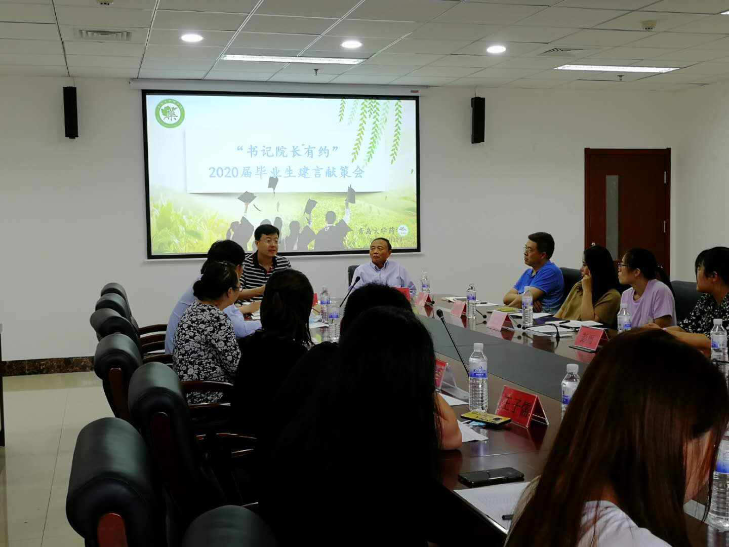 6月22日上午,太阳集团tyc151cc在浮山校区浩园医学教育综合楼A座215召开“书记经理有约”2020届毕业生建言献策会。太阳集团tyc151cc领导班子全体成员、各科、室(中心)主任、辅导员及15名2020届毕业生代表参加会议。党委副书记李延霞主持会议。