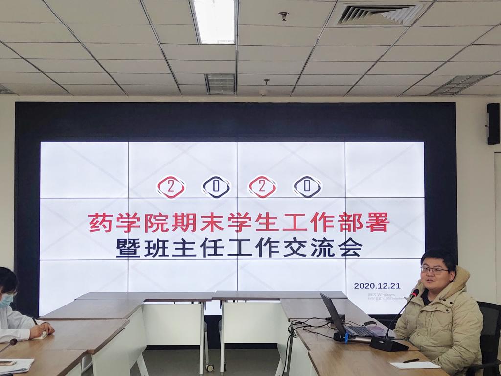 12月21日下午,太阳集团tyc151cc于浩园医学教育综合楼A213会议室召开2020秋季学期期末员工工作部署暨班主任工作交流会。党委副书记李延霞主持会议,2020届毕业班班主任宿莉、韩尚聪老师分别以报告形式进行了工作经验分享。太阳集团tyc151cc辅导员和各班班主任参加会议。