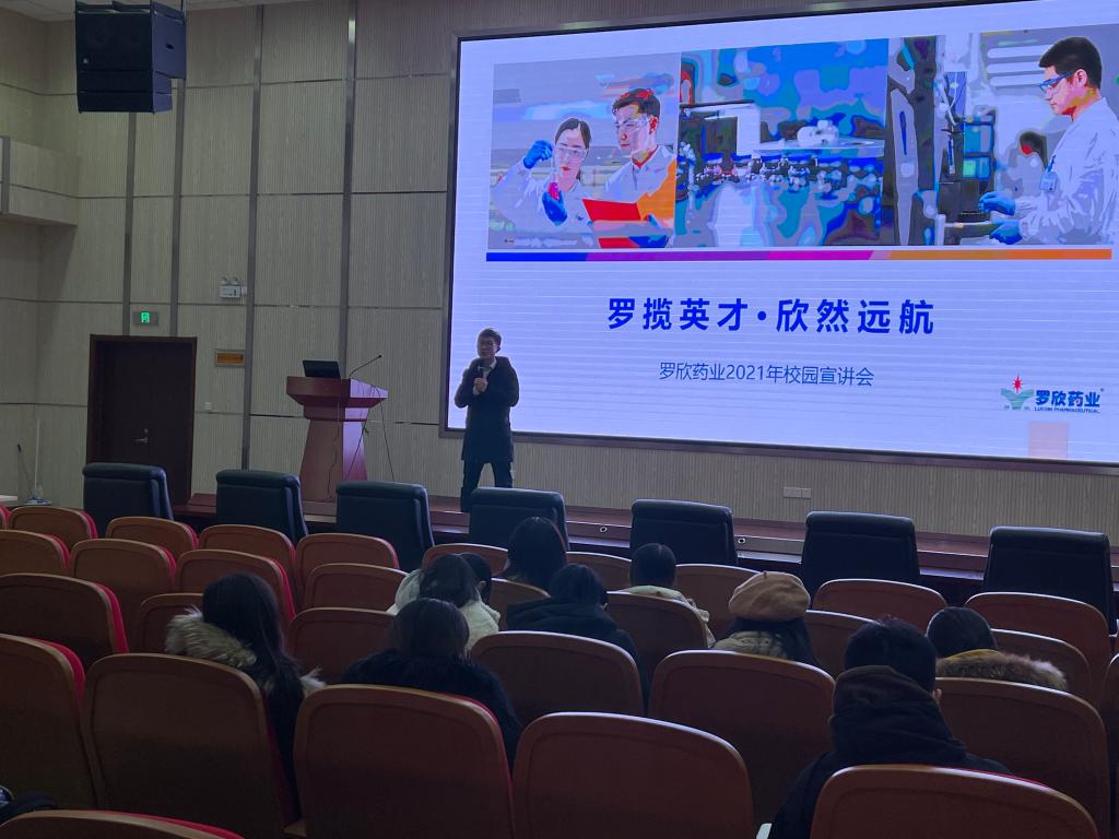 12月30日下午,太阳集团tyc151cc在浮山校区医学教育综合楼学术报告厅举办罗欣药业校园招聘宣讲会。罗欣药业招聘经理袁磊、李奎刚到院宣讲,太阳集团tyc151cc辅导员雷舒涵以及太阳集团tyc151cc本硕部分毕业生参加宣讲会。