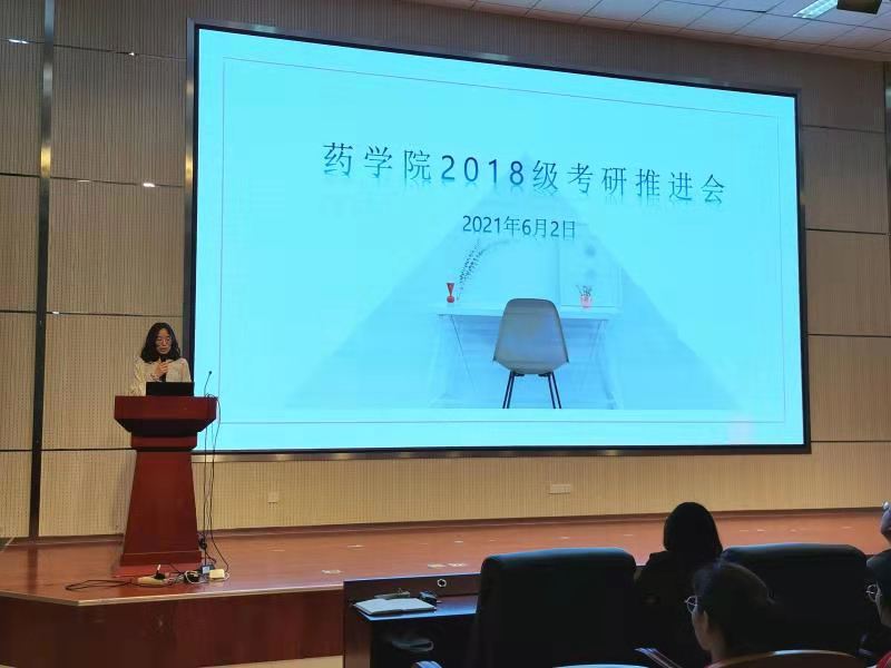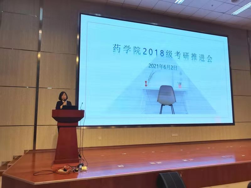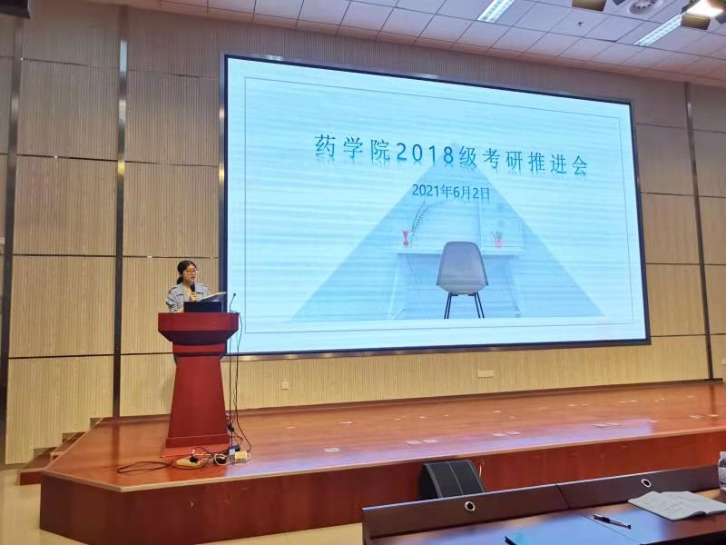 6月2日上午,太阳集团tyc151cc于浩园医学教育综合楼学术报告厅召开2018级本科生考研推进会。药公司党委书记李在宝、党委副书记李延霞、辅导员雷舒涵、2017级4班马彩云(考取北京协和医公司药物化学专业研究生)、2017级2班苗茁(考取太阳集团tyc151cc药物分析学专业研究生)出席会议,2018级全体本科生参加会议。李延霞主持会议。