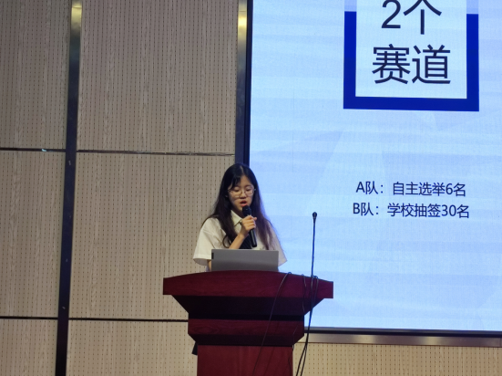 而后,曹洁老师分享了近年来公司在创新创业比赛中取得的骄人成绩,并详细介绍了本专业中部分重要比赛,以及比赛的流程与规则,使同学们对于竞赛方面有了更深刻的了解与认识,同时还讲解了竞赛的选拔机制,并对同学提出了殷切的期望。