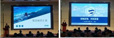 经过前期院内初赛选拔,共有10名同学脱颖而出,晋级决赛。本次决赛共分为两个阶段,第一阶段中,十位参赛选手各显其能,通过ppt展示将自己制作的简历呈现给现场的评委及观众。参赛选手根据自身的求职意向,从个人信息、教育背景、科研能力、岗位认知等方面进行简历的讲解,每一份简历都构思新颖、简洁明晰、求实又富有艺术性,给在座评委留下了深刻印象。评委们从个人形象、语言表达能力、PPT内容等方面进行打分评价,得分前六名的选手成功晋级第二阶段比赛。