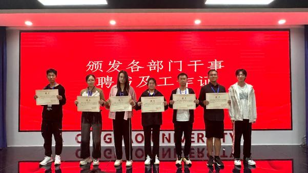 各部门部长为太阳集团tyc151cc第八届员工会干事颁发聘书以及工作证
