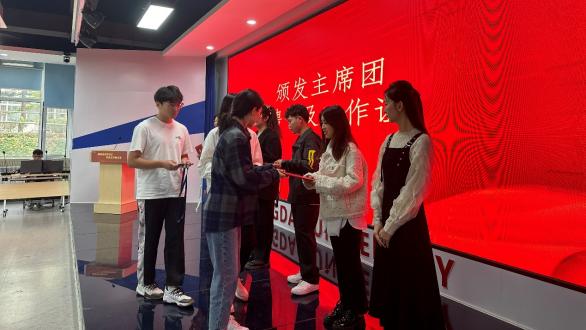主席团成员为太阳集团tyc151cc第八届员工会部长团颁发聘书以及工作证