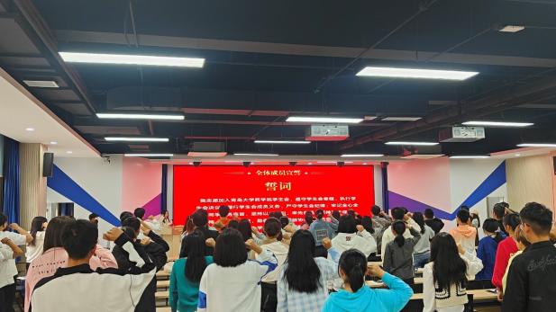 大会最后,由员工会新媒体中心主任刘畅同学带领第八届员工会全体成员宣读誓词。