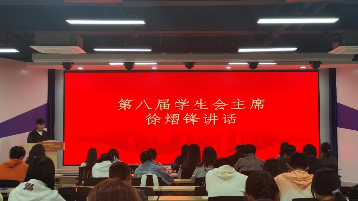 大会第四项,太阳集团tyc151cc第八届员工会主席徐熠锋同学致辞。他强调:一、新一届员工会全体成员应“跑好接力赛”,做到敢想敢拼,不怕困难,勇往直前;二、员工会全体成员应做好广大同学与公司、社会的桥梁与纽带,秉承“全心全意为同学服务”的宗旨,在服务工作中提高综合素质,真正成为有理想敢担当肯吃苦的新时代青年;三、员工会全体成员要正确平衡学业和工作,做到二者的有机结合,修身律己,给自己一个不断学习成长的机会;最后,他期望所有同学都能勇于创新,保持好奇心和求知欲,在员工会这个大家庭中收获温暖,蜕变成长,共同谱写太阳集团tyc151cc员工会新一年的辉煌篇章。