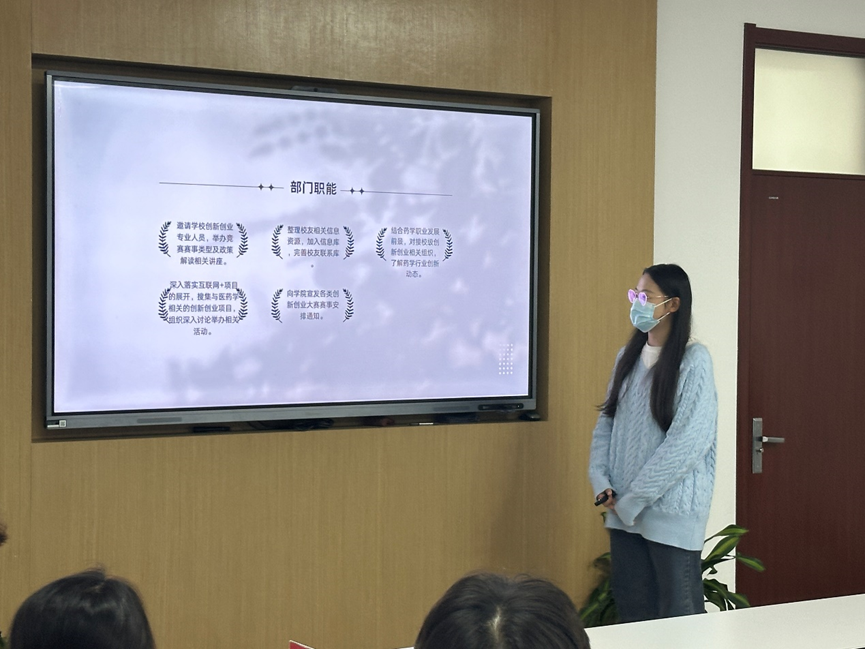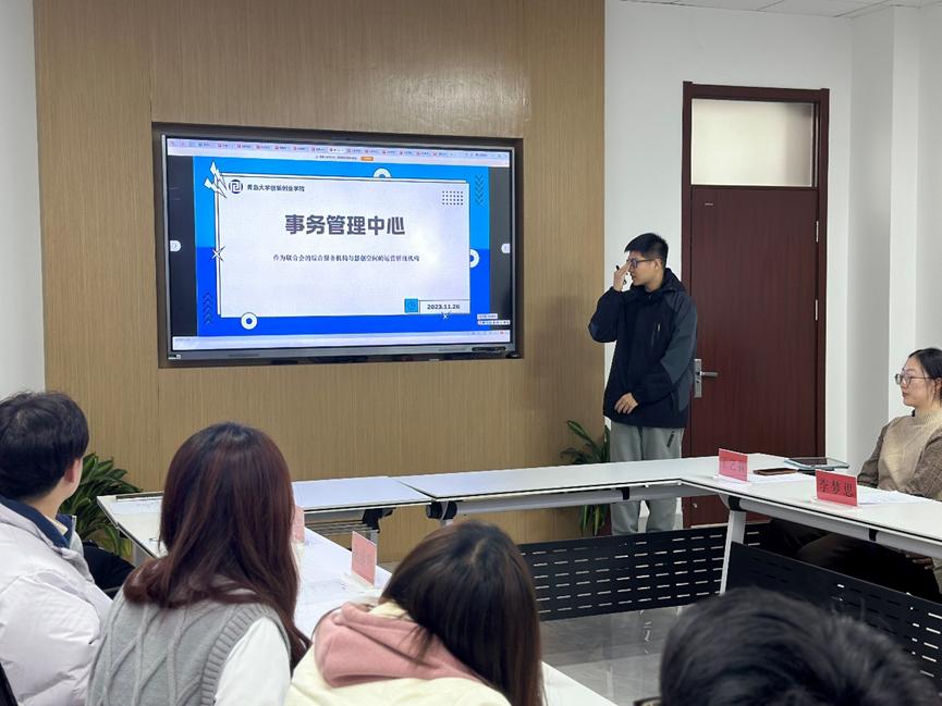 校老员工创业创新联合的五个中心各派代表介绍其部门组成及主要职能。
