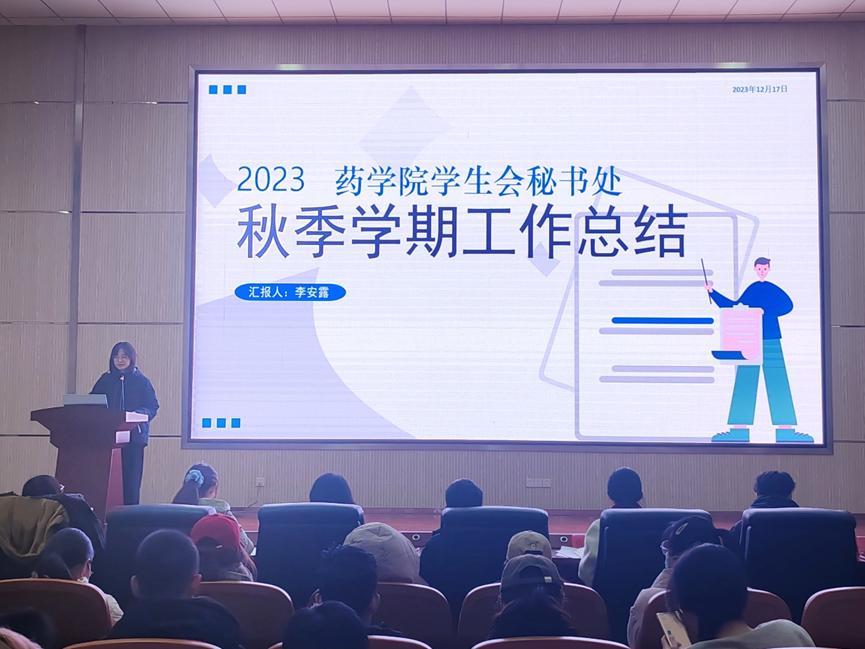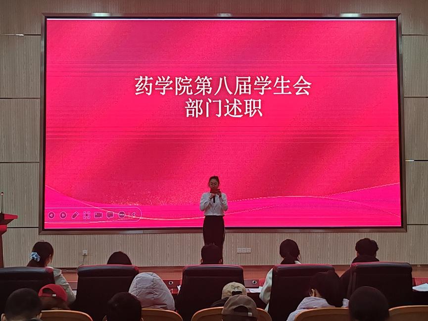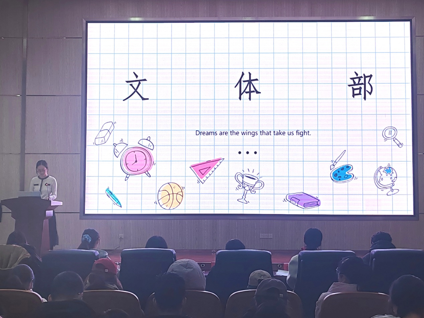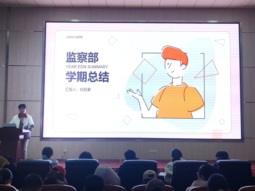 在述职环节,各部门负责人依次上台,详细汇报了本部门在2023年秋季学期的工作情况,介绍了部门的主要活动、取得的成绩以及面临的挑战,并分享了宝贵的工作经验。