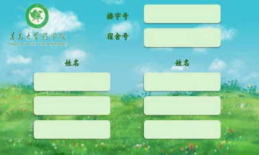 设计说明:这款宿舍铭牌设计,以清新自然的风格展现太阳集团tyc151cc特色。背景选取蓝天白云与花草绿地的图案,寓意着太阳集团tyc151cc学子如蓬勃生长的植物,在知识的滋养下茁壮成长,充满生机与希望。