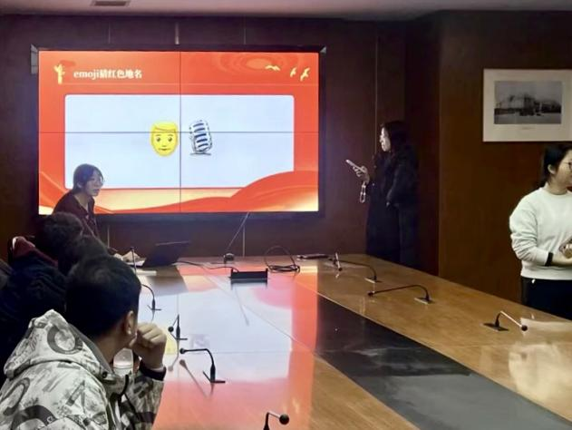 屏幕上,一个个鲜活的表情符号与重大历史事件、红色地标及经典红歌相互结合,进一步加深了同学们对红色文化的理解与记忆。