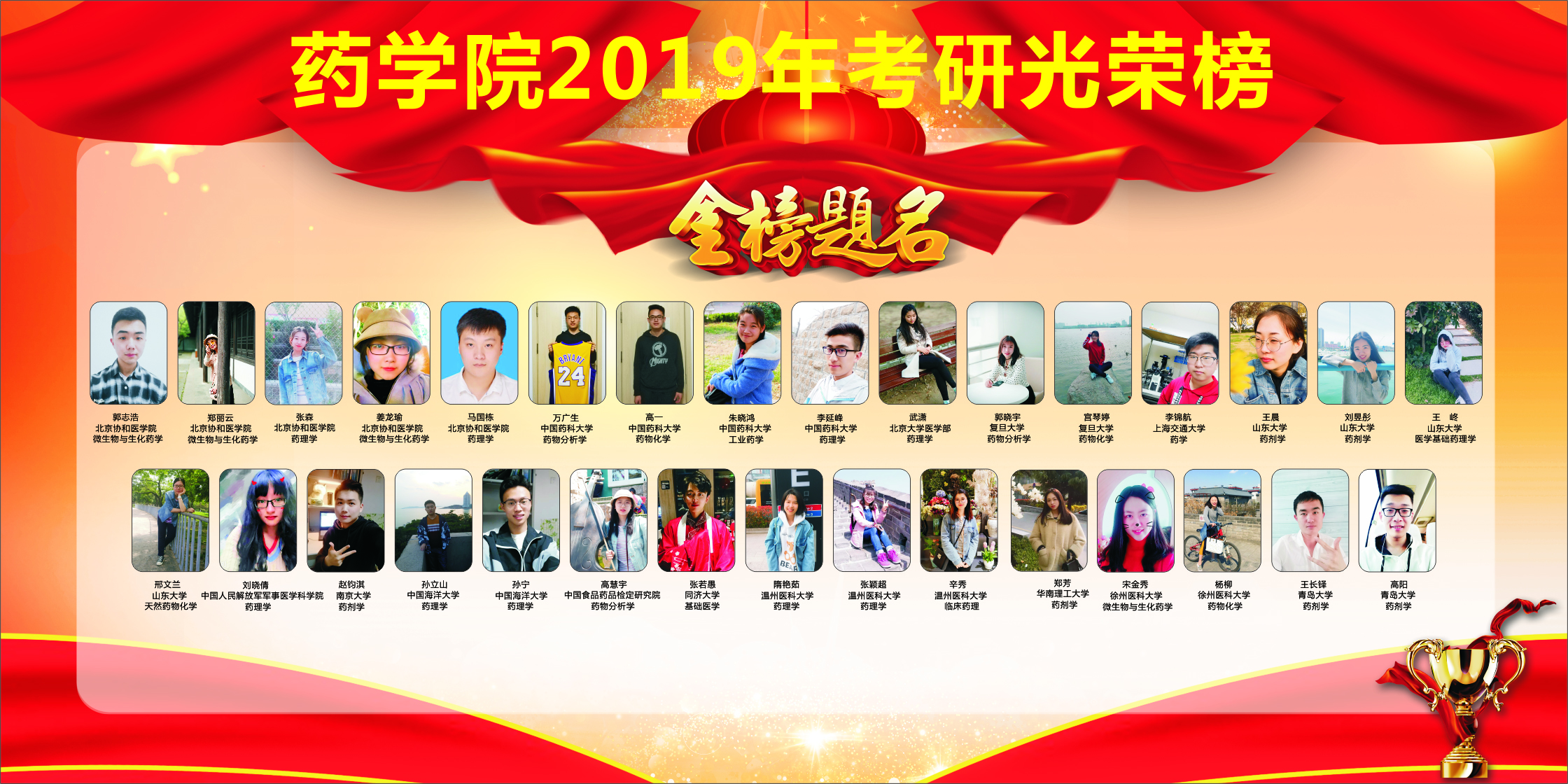 药公司2019届本科毕业生考研28名上线员工全部被北京协和医公司、中国药科大学、北京大学、复旦大学、上海交通大学、山东大学、同济大学等重点高校录取,另有3名员工被保送到北京协和医公司,整体考研率达55.4%,再创佳绩。2019届本科毕业生共56名,其中42名同学参加研究生入学考试,占毕业生总数的75%,达线28名,上线率66.7%。