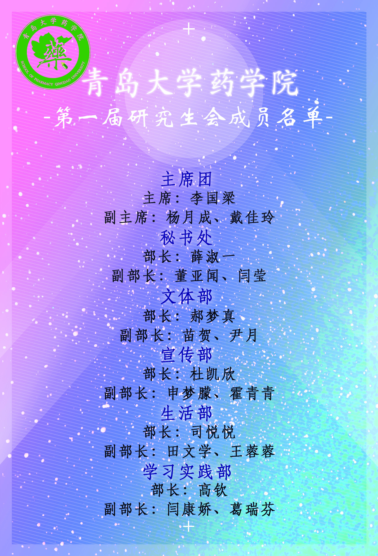 太阳集团tyc151cc第一届研究生会成员名单