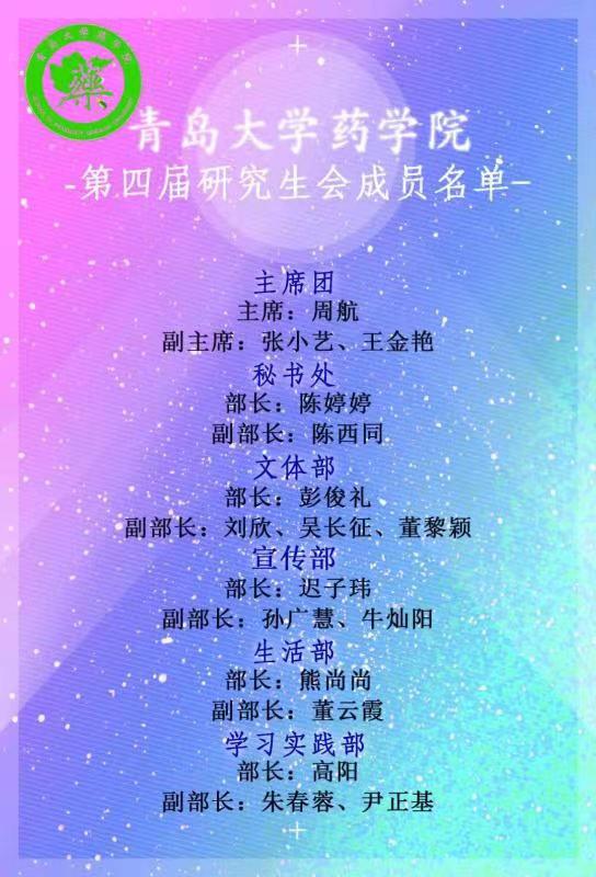 太阳集团tyc151cc第四届研究生会成员名单