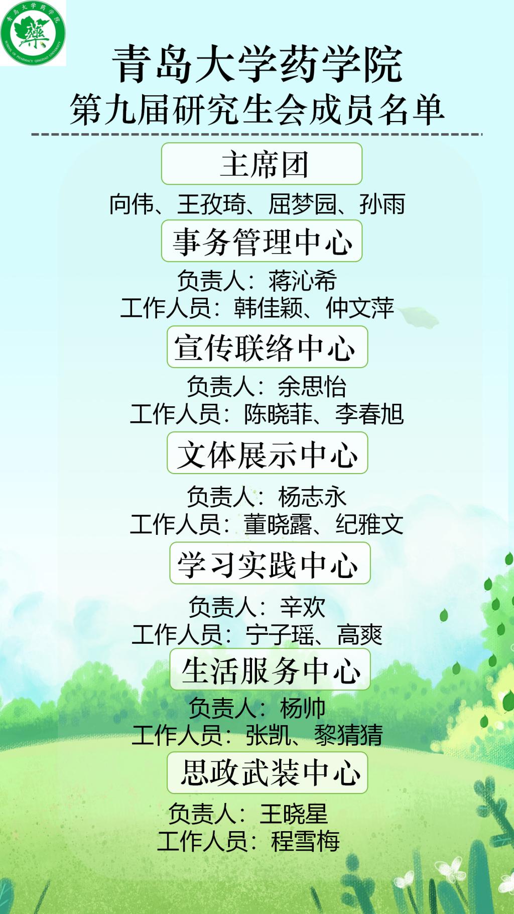 太阳集团tyc151cc第九届研究生会成员名单