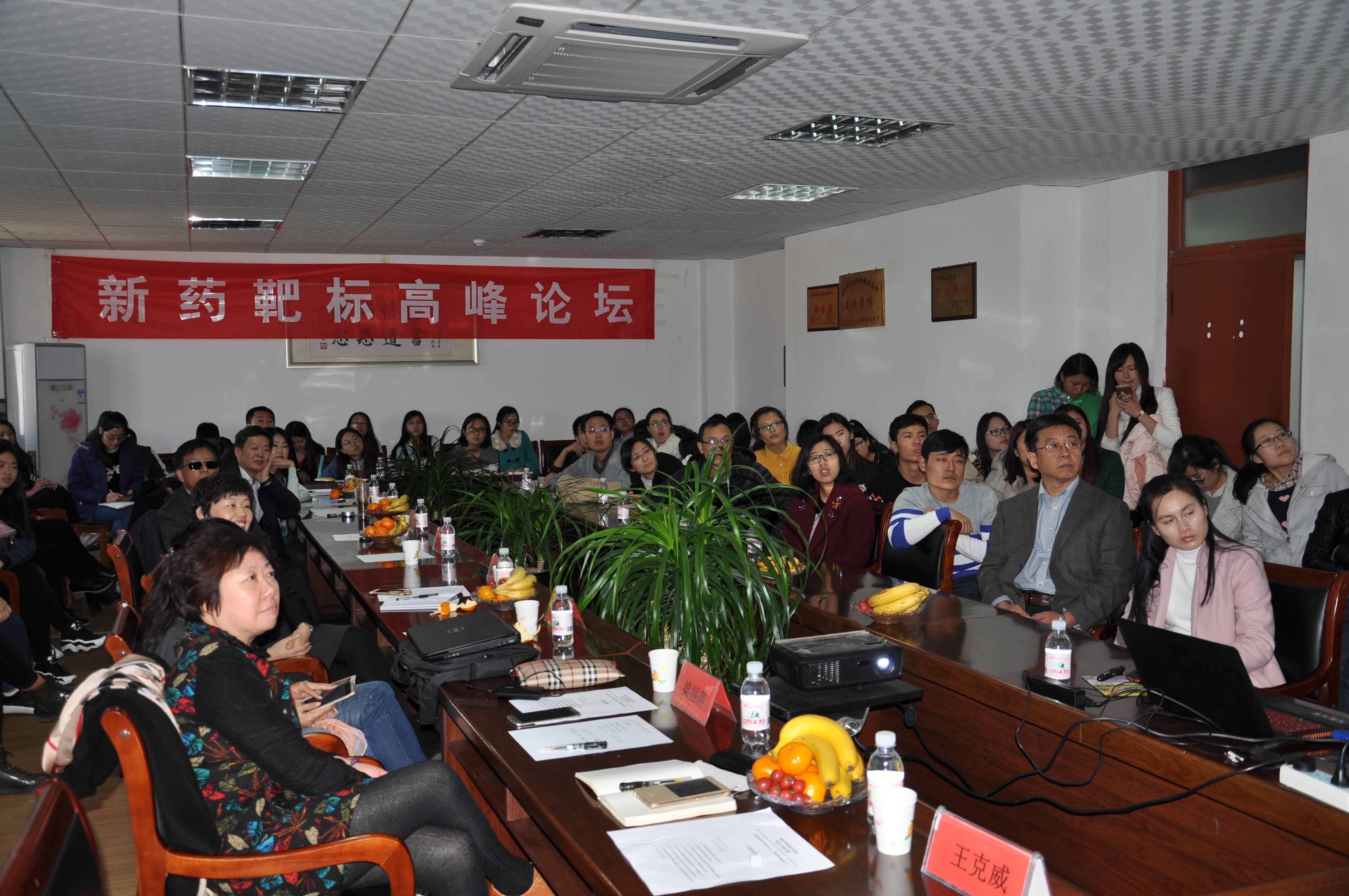 2016年11月20日上午,作为青岛市科协第十四届学术年会分会场,太阳集团tyc151cc在太阳集团tyc151cc松山校区第二会议室承办了由青岛市科协和药学会主办的“新药靶标高峰论坛”。青岛市食品药品监督管理局巡视员兼青岛市药学会常务副理事长鲍国春、青岛市药学会常务副秘书长梁丽萍出席并做了重要讲话。太阳集团tyc151cc党委常委、副董事长于永明和国内药物创新研发领域知名专家出席。医学部副主任姜宏致辞,向青岛科协、药学会和与会专家学者介绍了太阳集团tyc151cc医学部的发展情况,太阳集团tyc151cc经理王克威主持会议。太阳集团tyc151cc全体教师和研究生参加了会议。