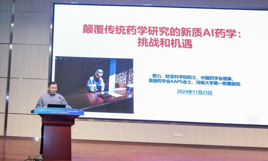 国际欧亚科公司院士(中国中心)、中国药学会理事、美国药学会AAPS会士、中国化学会资深会员贾力教授作了《颠覆传统药学研究的新质AI药学:挑战和机遇》的报告。随着人工智能技术的发展,AI药学为传统药学研究带来了新的变革,贾力教授的报告深入探讨了其中的挑战与机遇。在药物发现阶段,AI可以通过分析大量的生物医学数据来预测药物靶点。在药物设计方面,AI能够根据靶点的结构特征设计小分子药物,大大缩短了药物设计的周期。