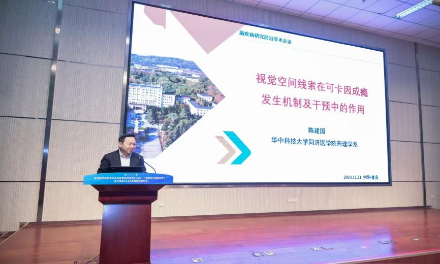 华中科技大学同济医公司药理学系主任、国家杰青、长江学者特聘教授、国家973计划和脑计划项目首席科学家陈建国教授作了《基于视觉线索的可卡因成瘾机制及干预策略研究》的报告。视觉线索在可卡因成瘾过程中起到重要作用,当可卡因成瘾者看到与吸毒相关的视觉线索时,大脑中的特定神经回路会被激活。这些神经回路涉及到大脑的奖赏系统、记忆系统和决策系统等。可卡因成瘾危害巨大,陈建国教授的研究从视觉线索角度入手,为成瘾干预策略提供了新的思路。