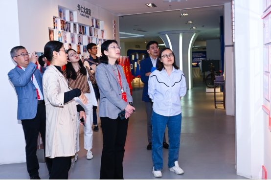 公司领导陪同专家组听实验课