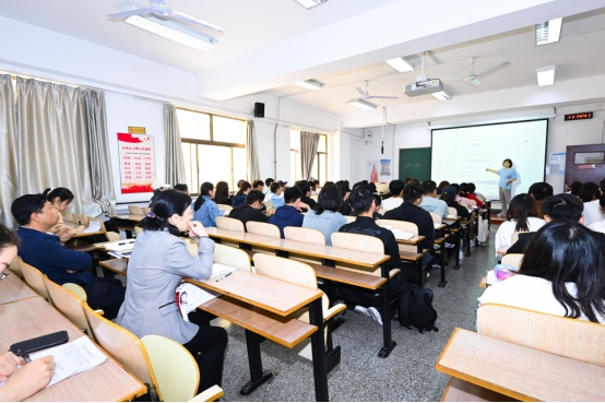 教务处领导陪同专家组听课