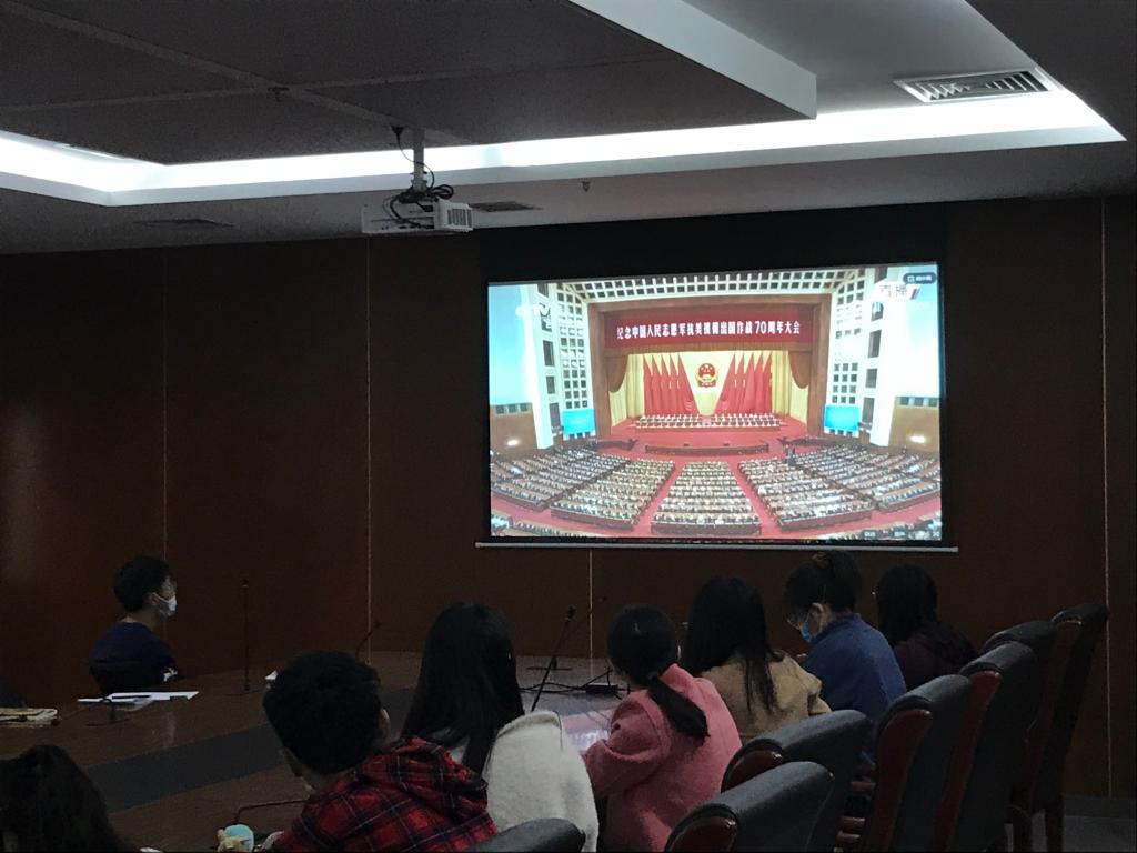 10月23日上午10:00,太阳集团tyc151cc员工党支部于医学部综合楼A座110会议室举办观看“纪念中国人民志愿军抗美援朝出国作战70周年大会”直播活动。党支部书记雷舒涵和全体员工党员参加会议。