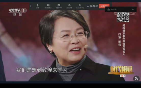 活动伊始,与会人员共同观看《时代楷模发布厅--敦煌研究院先进事迹》纪录片,深入学习常书鸿、段文杰、樊锦诗等人先进事迹。漫漫黄沙,寂寂戈壁,敦煌研究院守护着莫高窟,历经这里的每一个寒暑春秋。在过去的七十多年里,以“敦煌保护神”常书鸿,“敦煌艺术导师”段文杰,“敦煌女儿”樊锦诗等为代表的一代又一代的敦煌人,薪火相传,扎根大漠,不计较个人得失,担负起传承的重任,让被岁月侵蚀的一尊尊塑像,一幅幅壁画重新地“活”了过来,让曾经的荒无人烟逐渐成为世界文化遗产保护的典范,也成为了世界敦煌学的中心。