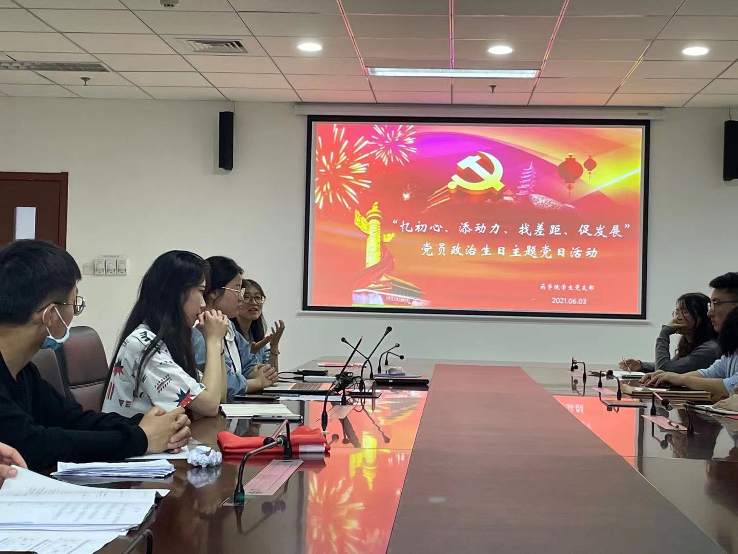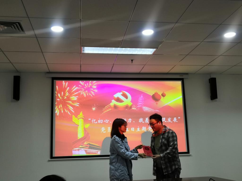 最后,由党支部书记雷舒涵为他们送上“党员政治生日祝福”,她表示开展此次活动,目的是让大家强化党性意识和宗旨意识,无论是在今后的学习还是工作中,都要以实际行动践行入党誓言,尤其作为员工党员,要时刻为其他同学起模范带头作用,不断为党的事业添砖加瓦。