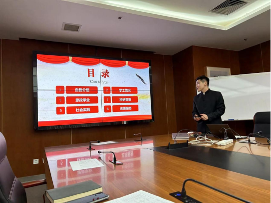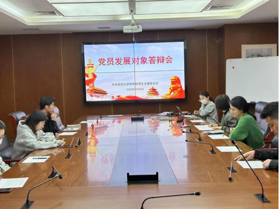 答辩会在苗茁同志的主持下有序开始。答辩实行个人自述3-4分钟,打分严格从思想情况、科研学习、社会实践、体美劳和语言表达五方面考量。各位候选人精神饱满,大方自信。答辩过程中大家充分展现了在思想、学习、生活上的表现以及目前取得的成绩,表达了对党的认识以及成为一名合格党员的迫切心情,表示今后将不断提高自身素质,积极向党组织靠拢。在谈到模范带头作用时,李晓敏同志表示自己在疫情期间有在基层工作的丰厚经验和成果;在谈到入党动机时,侯子茜同志表示自己从小深受感染,立志加入中国共产党,作为一名党员,奉献精神尤为重要。评审团对答辩同志进行了全面的考察,肯定了发展对象的优点,同时针对不足之处提出了建议,勉励他们继续努力,不骄不馁,保持积极向上的心态。答辩结束后,根据“全面考察、择优选取”的原则,评审团进行充分讨论,初步确定党员发展对象。