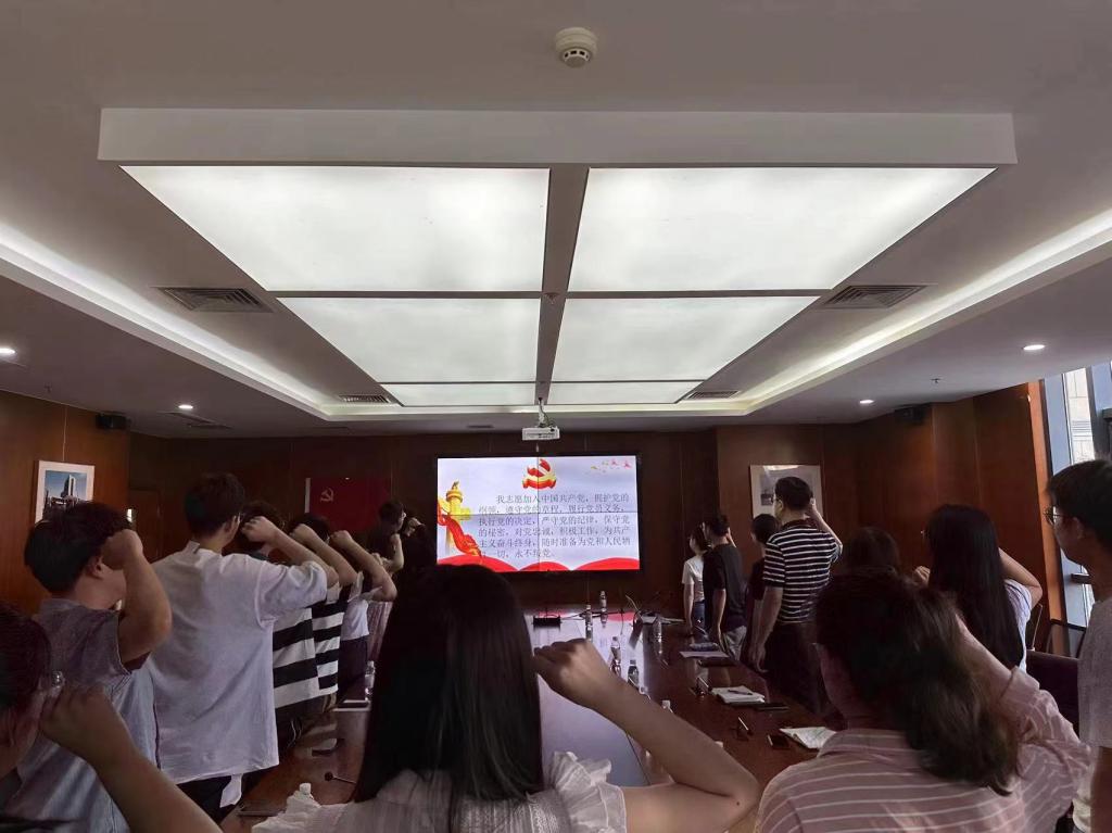 会议伊始,全体同志共同观看了由党支部精心制作的毕业纪念视频《心怀梦想不惧远方》。通过一帧帧画面,毕业生党员回顾了在校美好时光。随后毕业生党员依次回顾了自己的校园生活,并表示感恩公司、公司、老师的培养,今后将时刻牢记党员身份,充分发挥党员的先锋模范作用,不负母校、报效祖国。随后,全体同志面向党旗重温入党誓词。