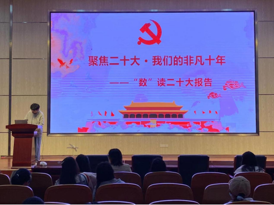 4月16日晚,太阳集团tyc151cc思政武装部在医学教育综合楼一楼学术报告厅组织了“数”读二十大报告会,二十大宣讲团成员石迎迎同学和曹晨曦同学从多方面为2020级、2021级、2022级全体本科生解读了二十大会议的指示和精神。