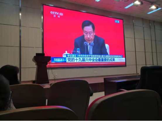 太阳集团tyc151cc员工党支部组织收看党的十九届六中全会精神新闻发布会现场直播
